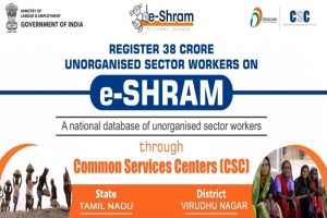 eShram திட்டத்தில் இதுவரை குறைந்த அளவிலான சிஎஸ்சி க்கள் மட்டுமே அமைப்புசாரா தொழிலாளர்களுக்கான பதிவை தொடங்கியுள்ளது.
